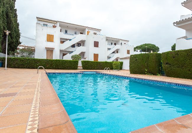 The studio is located in a complex with a communal pool and private parking just 400 m from Riells beach and the commercial area with restaurants and shops. It has a modern design with light and pleasant tones. Here’s everything you need for a carefree holiday. It has a fully equipped kitchen, a comfortable bed with good quality linens, a sofa, air conditioning and Smart TV. In the room there is a wide opening with direct access to the terrace with a table to enjoy meals outside.