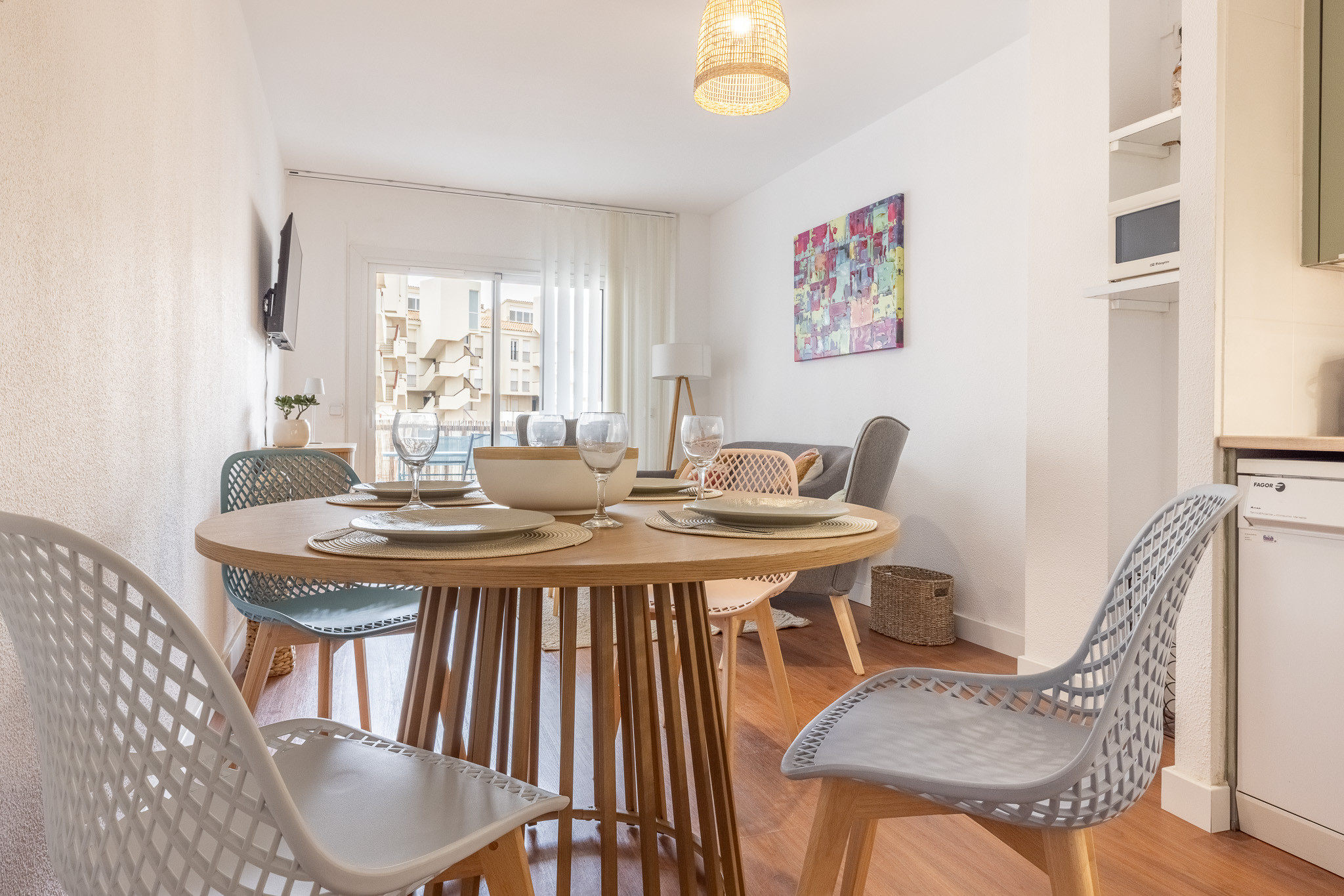 Salon-salle à manger lumineux, salle de bain complète et cuisine équipée de tout le nécessaire pour vos plats préférés. Et pour que votre séjour soit parfait, nous incluons une connexion WiFi gratuite, une Smart TV et une place de parking privée, essentielle pour profiter de L'Escala en toute liberté.