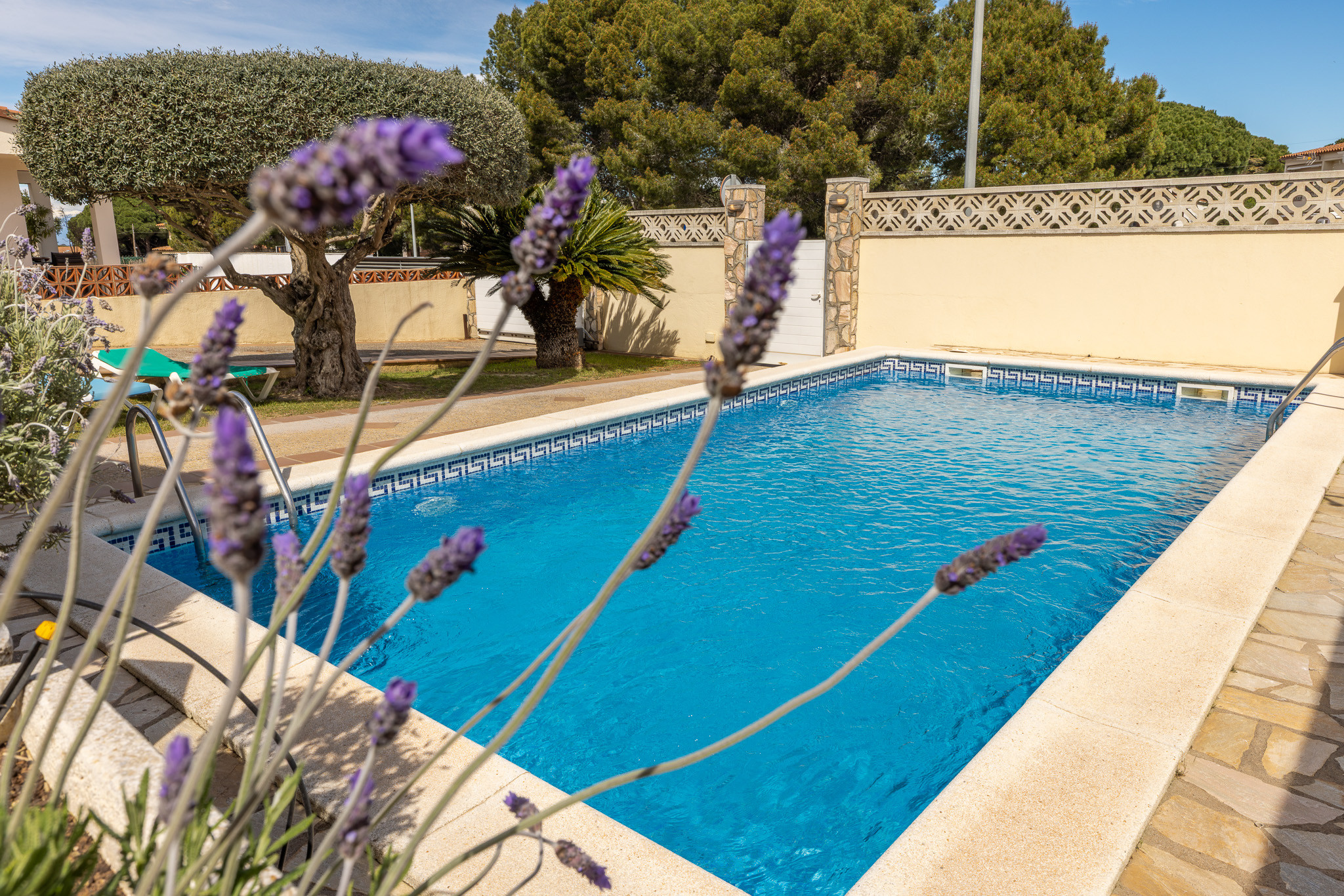 Casa amb ampli jardí, gespa, barbacoa i piscina privada. Situada en una zona tranquil·la, envoltada del Parc Natural del Montgrí i cases particulars, a un quilòmetre de la platja Riells. Aquesta convenient ubicació permet gaudir de passejos i ciclisme a través de la reserva fins a la badia més agermanada de la costa: Cala Montgó. La casa té dues plantes, quatre dormitoris i dos banys. Una de les habitacions i les dutxes es troben a la planta baixa que és perfecte per a gent gran i persones amb discapacitat. El saló menjador té accés directe al jardí on hi ha una terrassa amb una taula de menjador i tendal. La cuina està totalment equipada fins i tot amb rentaplats. A més la casa està equipada amb aire condicionat. El Wi-Fi està disponible a tota la casa de forma gratuïta. Hi ha dues places d’ aparcament al jardí més una plaça d’ aparcament addicional al front de l’ entrada. La casa també disposa d’un rebost on es poden guardar bicicletes, taules de surf i canoes.
